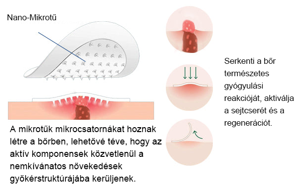 🔸 A bőrnövedékeket a gyökerüknél célozza meg